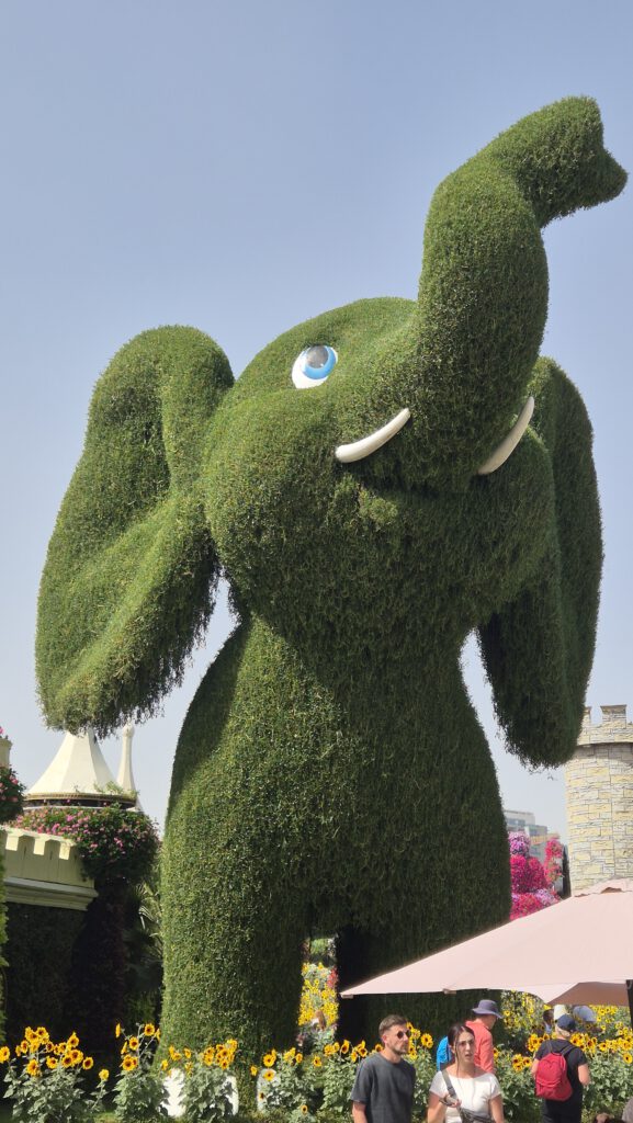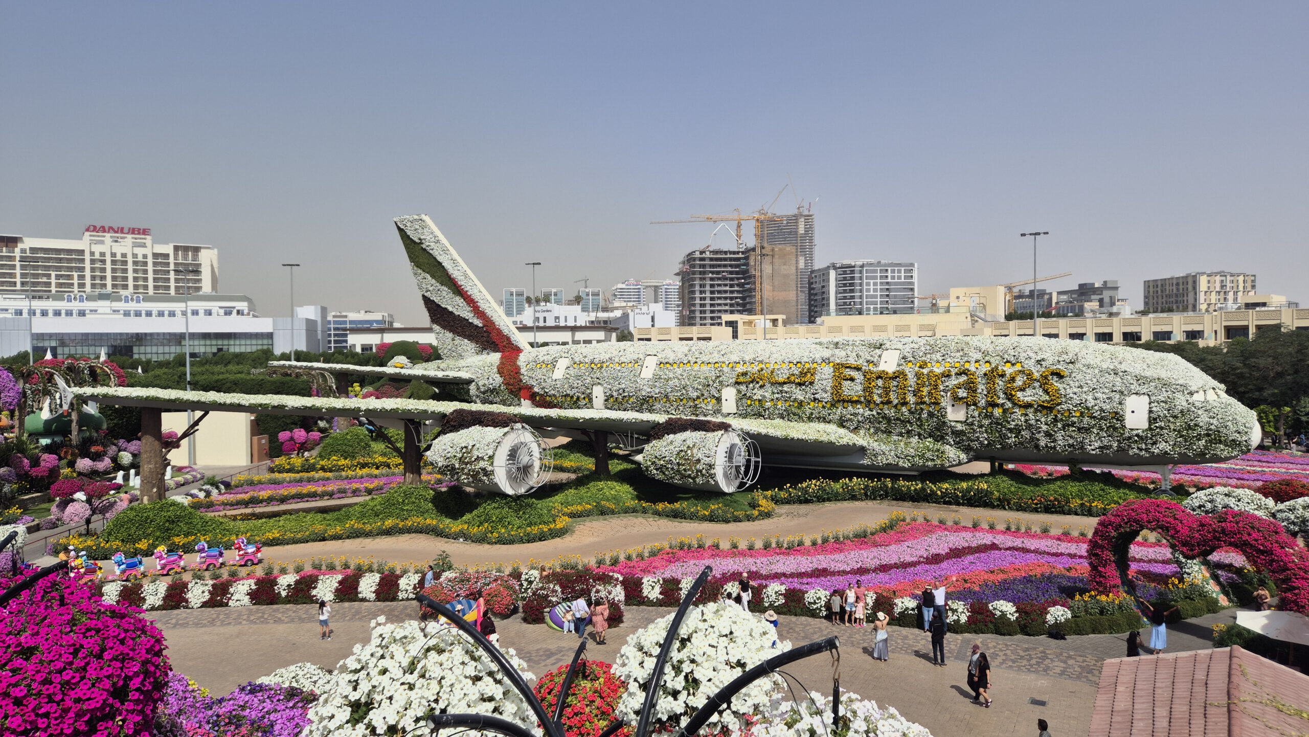 Nach dem Frühstück in der Marina fuhren wir mit Metro und Bus von Cache zu Cache und besuchten zwischendurch den wirklich toll angelegten Miracle Garden, wo man einen mit Blumen besetzten A380 in Originalgröße bestaunen kann. Hier ist der Größenwahnsinn spürbar, wie an vielen Orten im Emirat. Hübsch anzusehen ist es natürlich trotzdem.