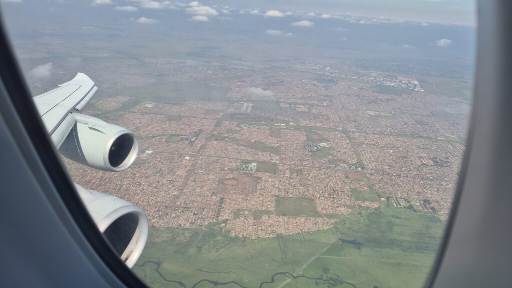 Begonnen hat auch diese Reise am Flughafen Frankfurt. Dank unserer Treue zur Lufthansa durften wir uns diesmal auf dem Hinflug einen kleinen Traum erfüllen und in der Business Class im Upper Deck der Boeing 747 Platz nehmen. Einfach ein tolles Erlebnis, in diesem doch mittlerweile sehr seltenen Flugzeugtyp oben zu sitzen und den Nachtflug nach Johannesburg im liegen zu verbringen. Die Zeit verging wortwörtlich wie im Flug und nach einem Go-Around im Landeanflug setzten wir nach zehneinhalb Stunden Flug in Johannesburg auf.