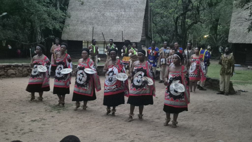 Nach einer etwas wirren Einreiseprozedur hatten wir die Stempel im Pass und konnten am Abend unsere Unterkunft in einem der nationalen Big Game Reserves erreichen. Hier laufen – wie im Krüger Nationalpark – frei herum, jedoch muss man hier keine Angst haben, von Löwen oder ähnlichen Raubtieren zerfleischt zu werden. Die Warzenschweine und Springböcke waren völlig harmlos. In und an den Gewässern allerdings waren wir etwas vorsichtiger, denn Krokodile und Flusspferde sind doch etwas angriffslustiger. Den Länderpunkt konnten wir uns gleich in der Nähe unserer Unterkunft sichern. Am Abend wohnten wir einem traditionellen Tanz bei, der wohl extra für eine große Reisegruppe aus Frankreich, die auch hier übernachtete, organisiert wurde.
